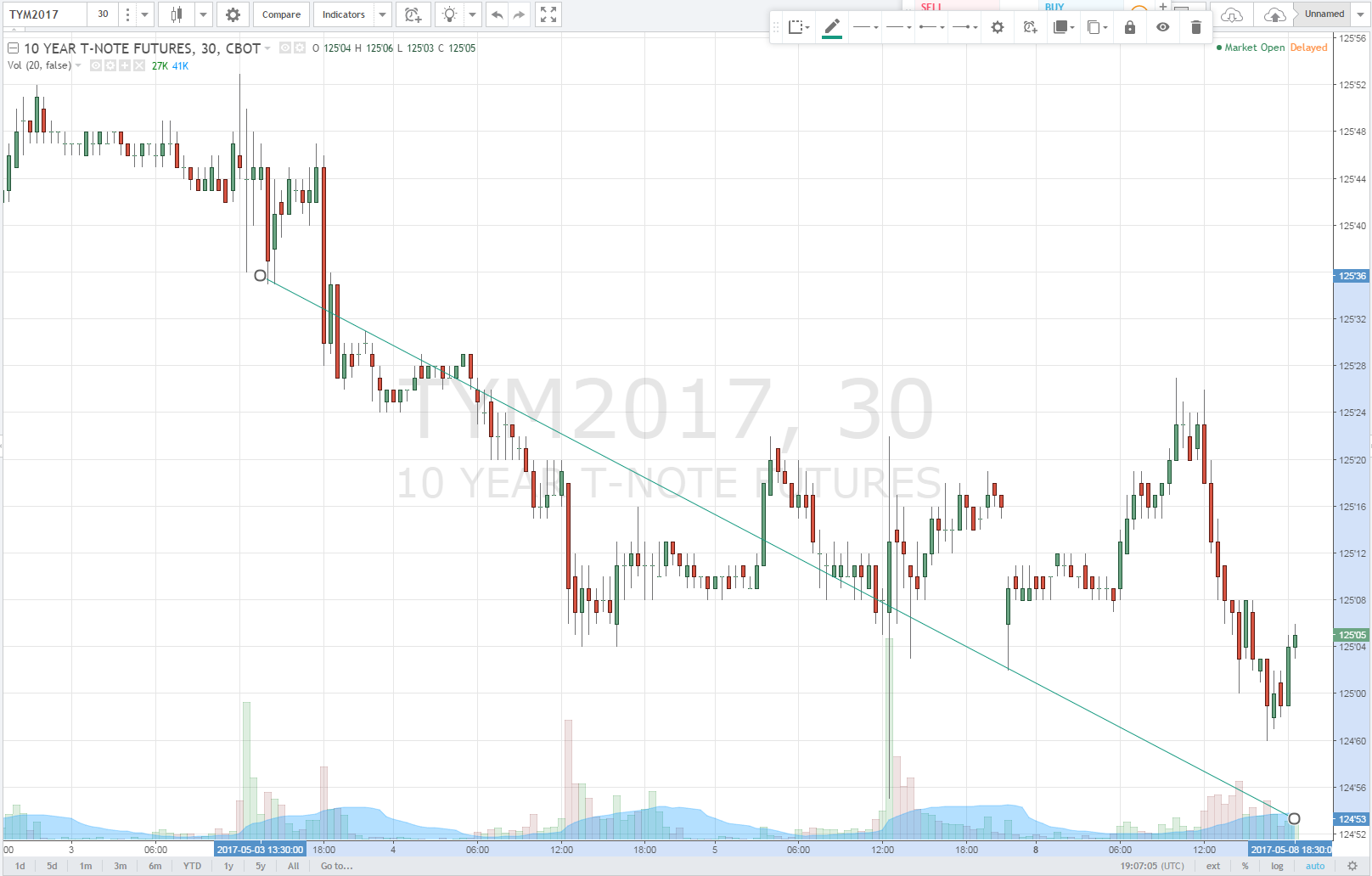 We saw an increase in the Stock Index in the short run due to the momentum of the new highs achieved on May 5th, 2017. With the French election firmly behind us, bias should be to the upside. While we are always concerned with topping markets, there is nothing to back up jitters for a serious pull back due to strong earnings, the economy and what the market perceives to be business-friendly policies.