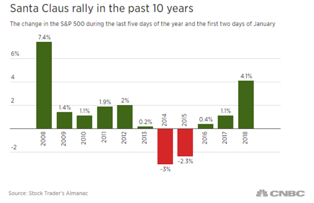 Chart of the Santa Claus Rally from 2008 – 2018