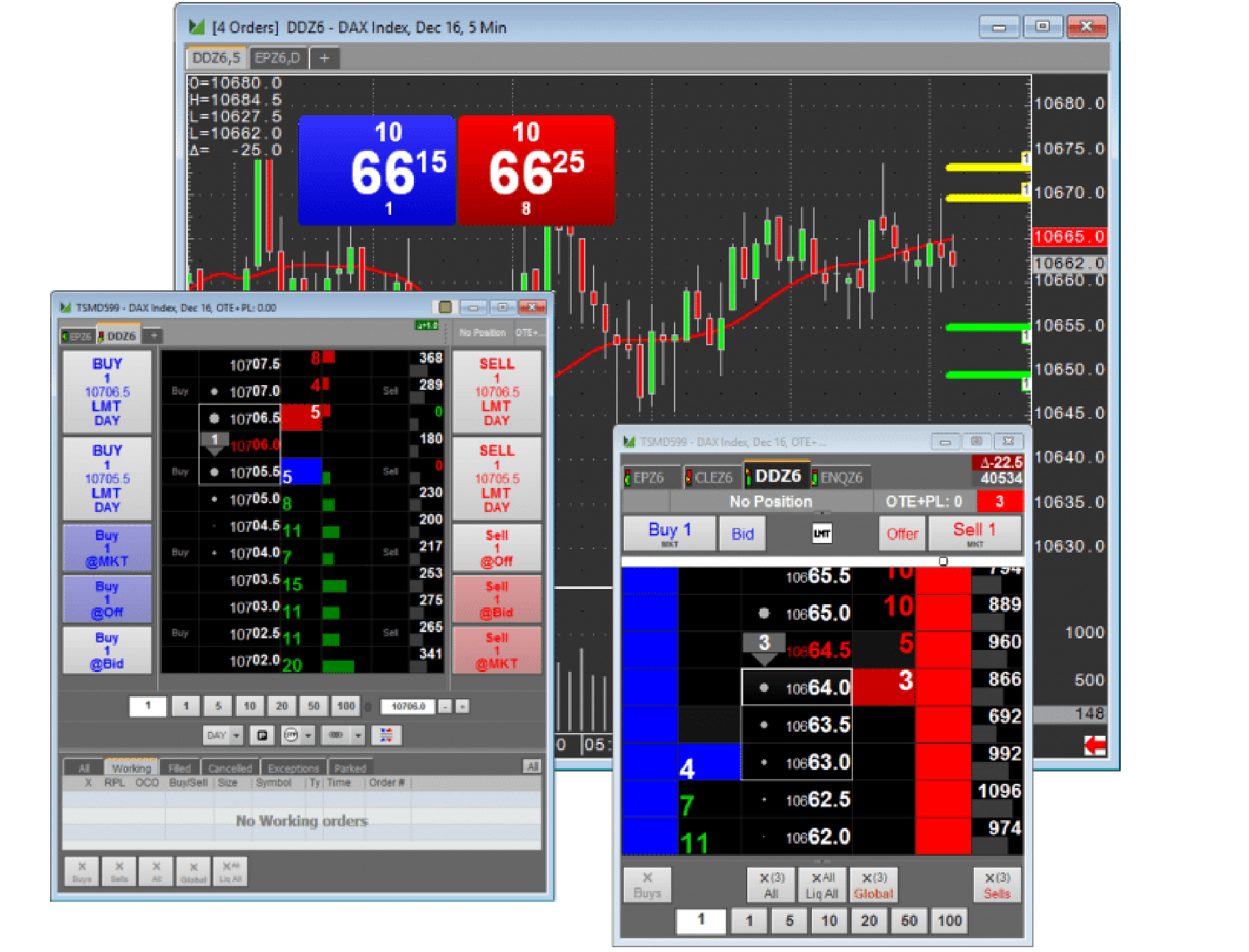 • Trade from DOM, Chart, Order Ticket, Spreadsheets, or FX Style ticket.