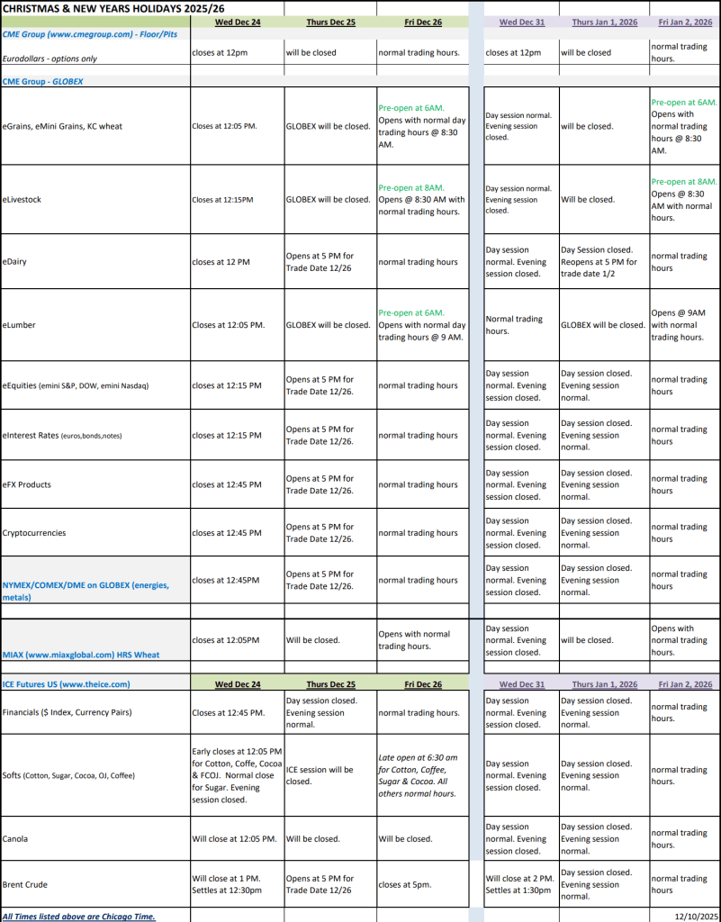 Please refer to the following tables for the 2025 Christmas and 2026 New Year Holiday Trading Schedule: