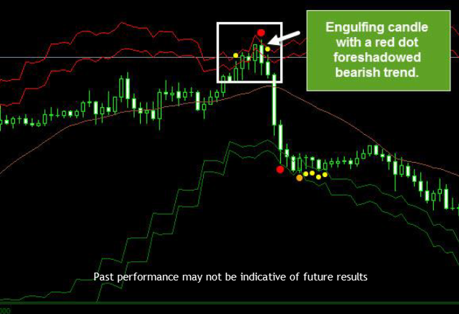 The yellow dots in comparison indicate early warning signs of trend exhaustion and are therefore weaker indicators of a potential momentum and typically do not foreshadow reversals, but we will explore scenarios where yellow dots can be combined with other signals to form trade ideas. The primary function of the yellow dots is to raise awareness that the current trend is firm but that it may be shifting soon.